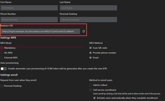 - You might need to change the URL if you have multiple SAML IDP, which can be seen in the Admin Portal later on