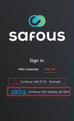 Your Okta Application > General > SAML Settings > Single Sign On URL. - If everything is configured correctly, you can log in to the user portal (https://login.tenant.ztna.safous.com) and choose to log in With IdP, where you will see your Okta SAML configuration.