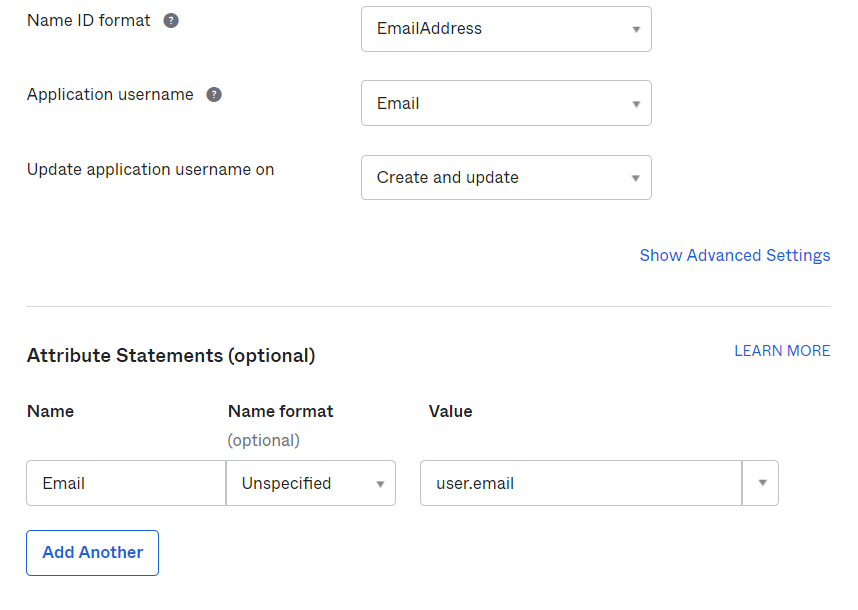 - Fill in both required "Username attribute" and "Email Attribute" with your Attribute configuration in the Okta Application. In this example, we're using Email. You can also optionally map other attributes by matching it with your attribute configuration in the Okta application._