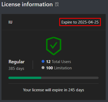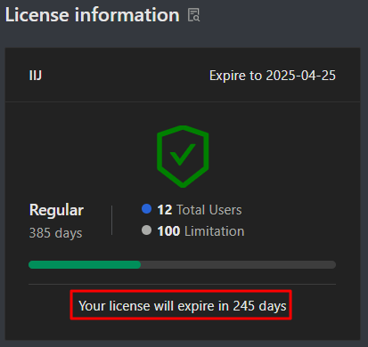 - How many days left until the license will be expired