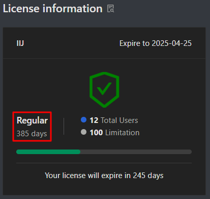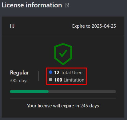 - Total days of the license validity