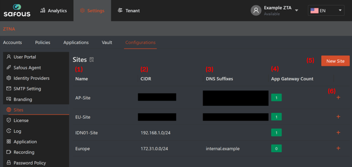 Your company might have more than 1 office/data center and within the offices, there are various internal servers installed. Sites used to group App Gateways that have connections to these internal applications/servers.