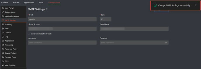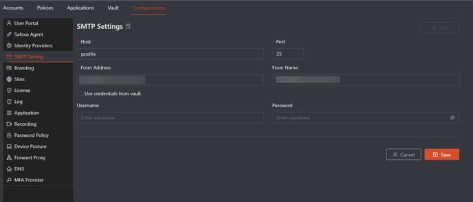 Go to Settings > ZTNA > Configurations > SMTP Setting, then click Edit