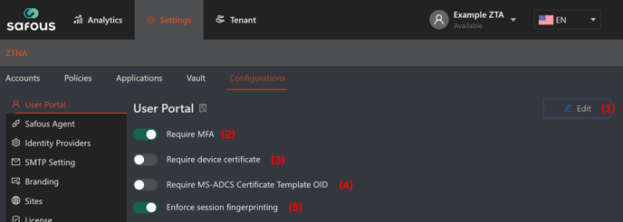 This page explains the configuration parameters in: Settings > ZTNA > Configurations > User Portal of admin portal (portal.safous.com)