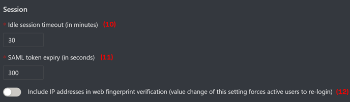 SAML token expiry, choose how long SAML token for user portal will preserve in seconds.