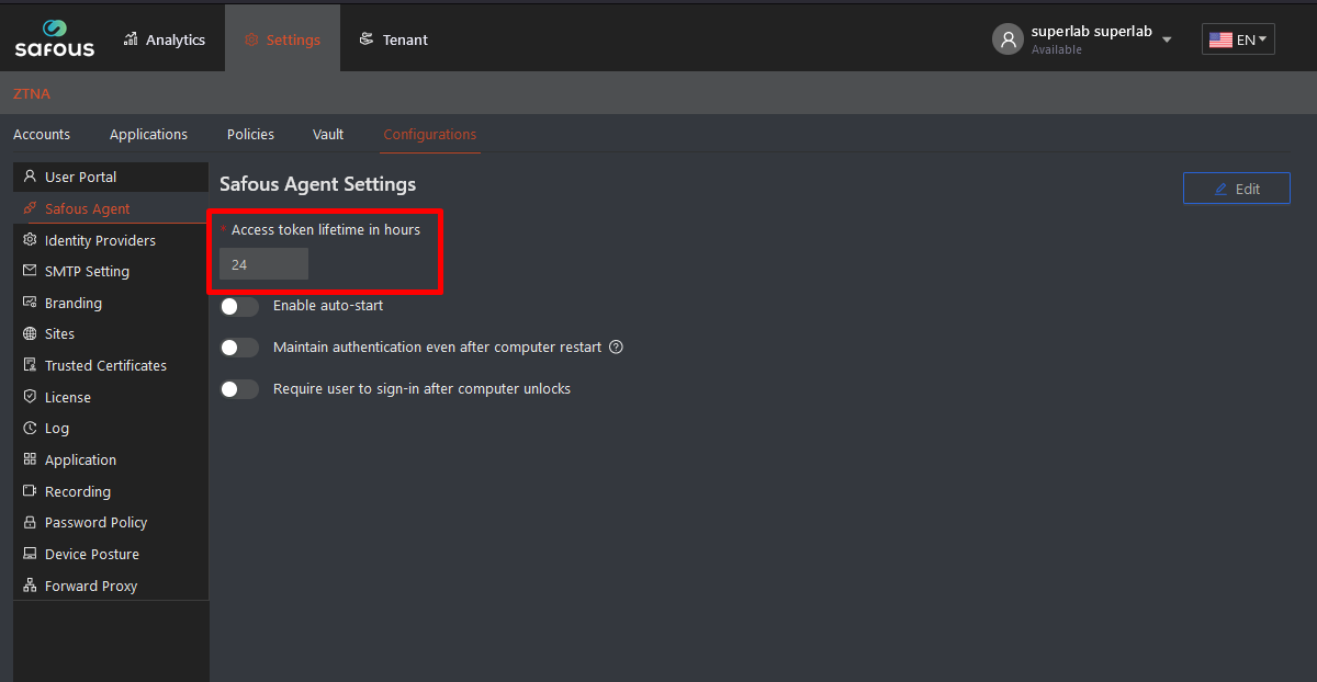 Idle session time for the native protocol (RDP native and SSH native) is set on your organization’s server and is not configured within the Safous ZTA platform. The “idle session” time you have set on your server for these applications is what is relevant for you.