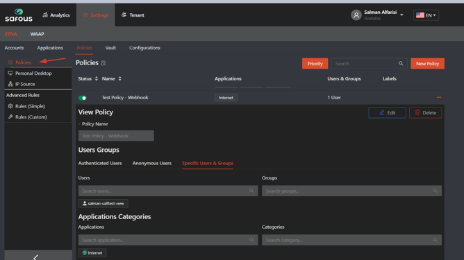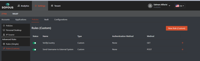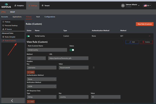 In the Admin Portal, navigate to the Policies > Advanced Rule > Rules (Custom)