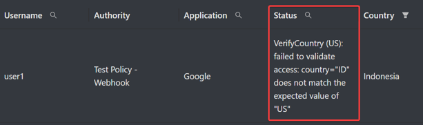 If access was denied based on failure to meet the webhook criteria, the report of the reason why access was denied are available in the Analytics > ZTNA > Activity Logs > Status Column.