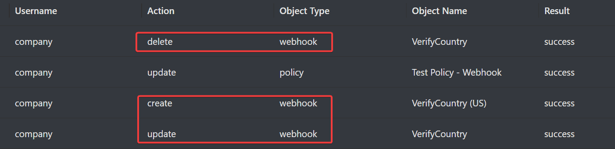 Creating, deleting, and editing webhooks are recorded in the Analytics > ZTNA > Audit Logs.