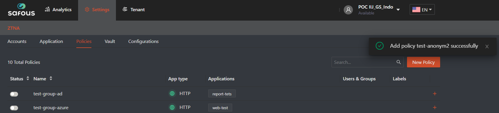 - Once clicked, it will expand all the option for policy that can be use for application authorization