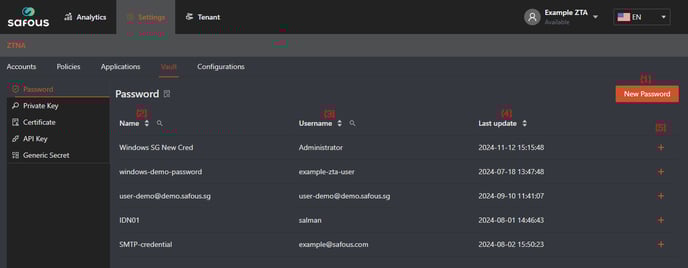 - Navigate to Settings > ZTNA >Â Vault > Password