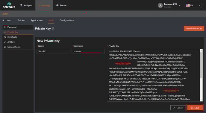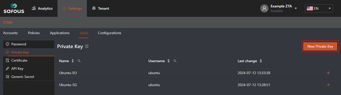 - Navigate to Settings > ZTNA >Â Vault > Private Key