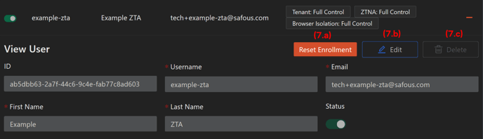 (7.a) Reset Enrollment, click this button to reset/re-enroll the administrator's MFA.