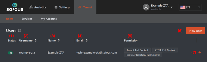 This article explains detailed configuration parameters of Tenant > Users in the Safous admin portal (portal.safous.com)