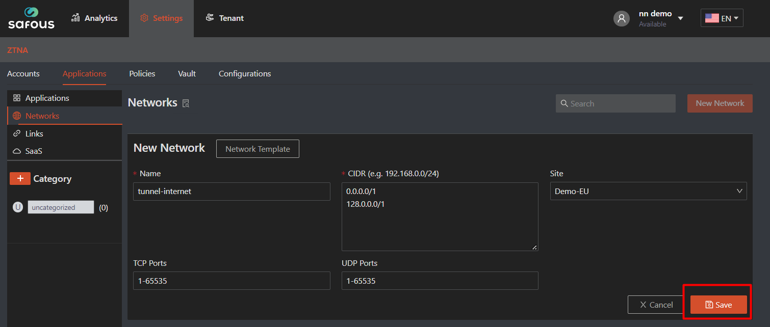 It's possible for Safous ZTNA Service to allows users of ZTNA to access all internet traffic through the App Gateway which leverage the Safous agent to installed in end user client computer and creating network application in the Admin Portal.