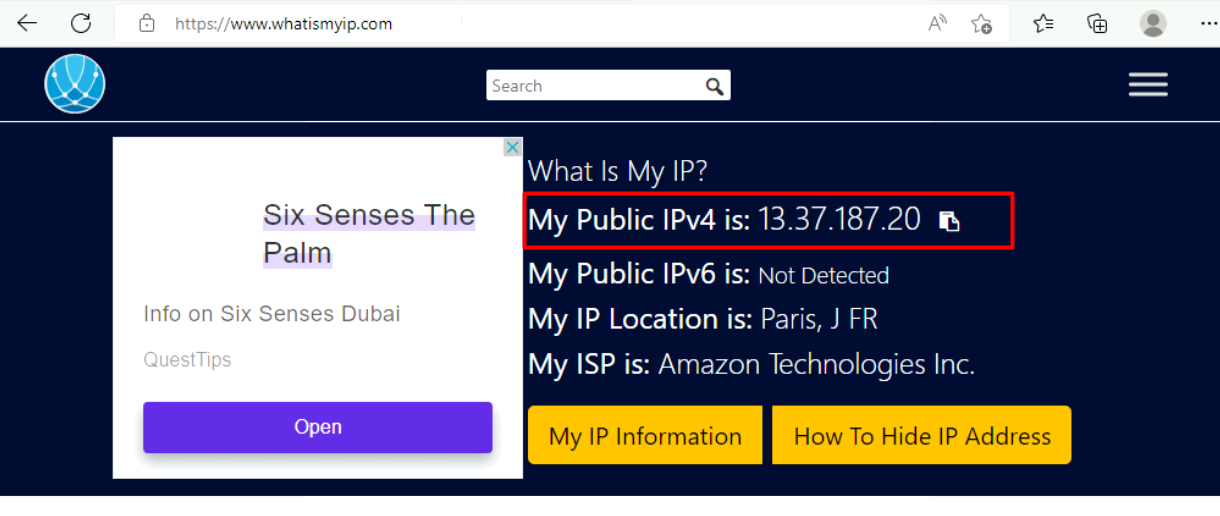 When you succeeded with agent connection to your ZTNA environment, you can verify whether your internet access already "tunnel" through App Gateway or not by accessing https://www.whatismyip.com/ or other public web that can detect your public IP and compared with Source IP that being use by the App Gateway.