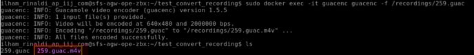 To convert a recording to the M4V format, use the guacenc utility inside the running container. Run the following command: