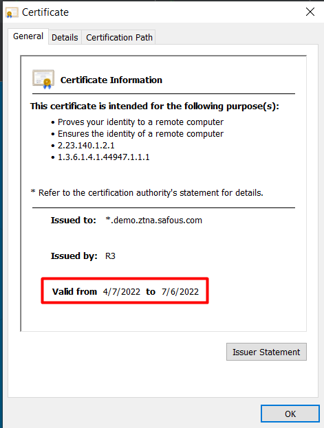 By default, App Gateway can automatically update the SSL certificate (not Safous ZTNA License) of the system without any human interruption. That can be done as long as the all Pre-requisite that requires by Safous ZTNA Service already fulfilled. In some customer cases, they have very restricted company policy for internet outbound connection so the App Gateway cannot update the SSL that triggered by system.