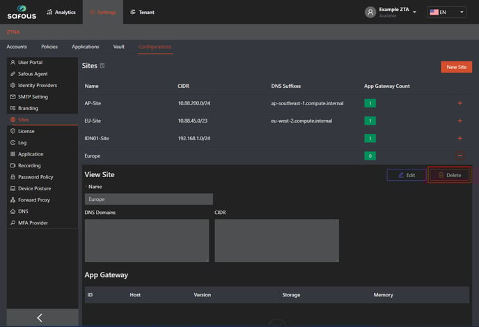 Lastly please access to admin portal (https://portal.safous.com) then go to Setting > ZTA > Configurations > Sites