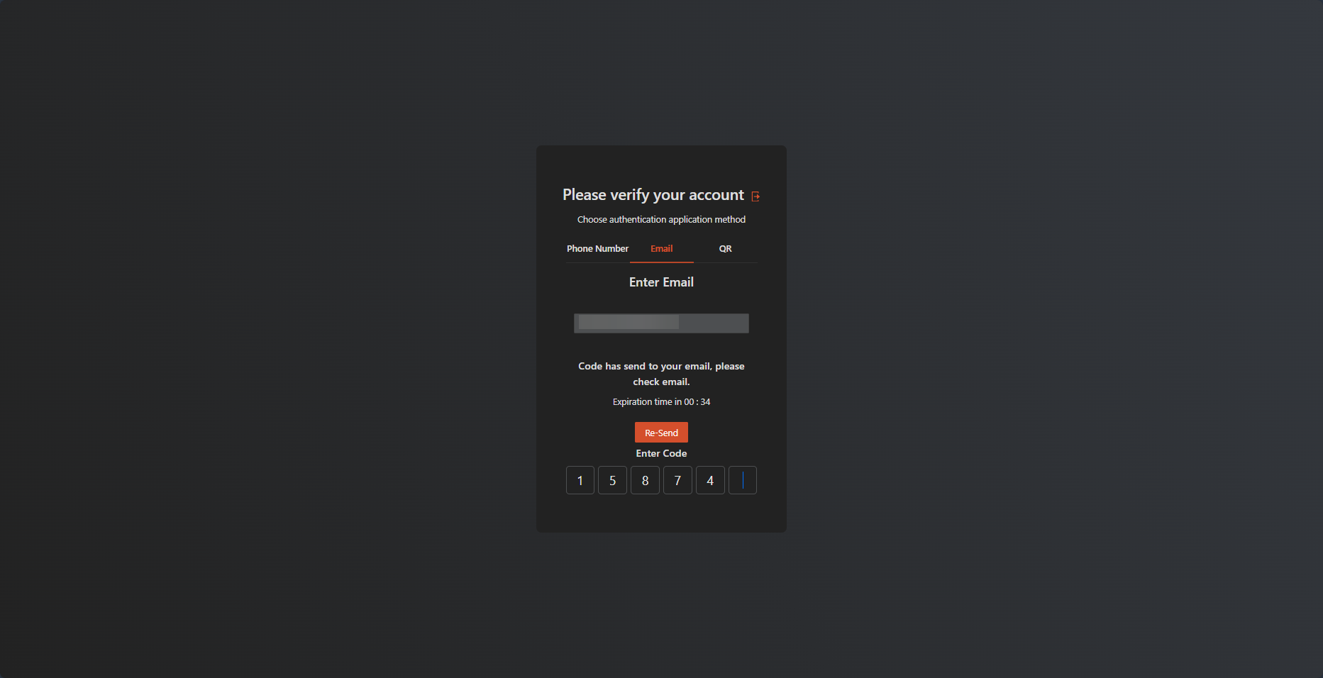 If you choose Email address for MFA method, then you need to input your email address. Once you click send, the OTP will be sent to your email address.