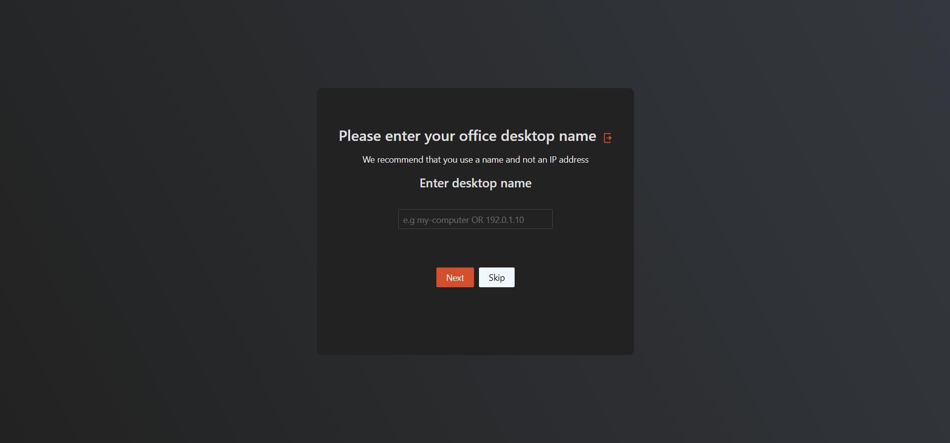 Once the correct user and password have been filled, you will be asked to enter your office desktop name to be able to access Personal Desktop feature. Filling the information in this page is optional, so you could fill it or just skip it.