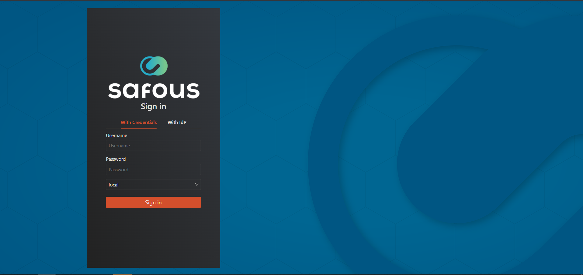 Open User Portal URL in your web browser based on the delivery information that you got from Safous representative or system, which the URL will be like https://users.tenant.ztna.safous.com or https://users.tenant.ztna.safous.cn depending which domain your environment you are using. Then your web browser will show you this login web page: