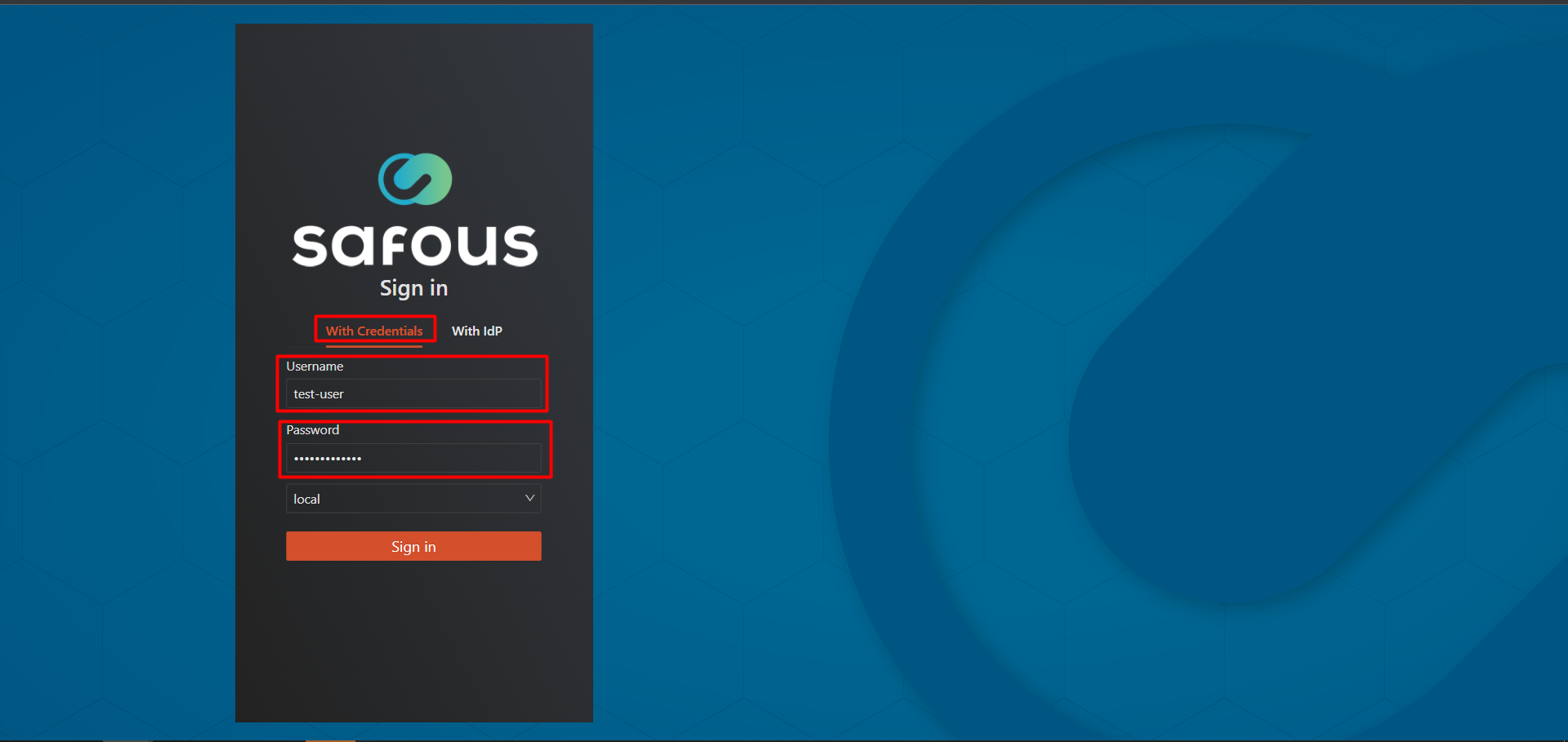 To be able to login to the user portal, a user must be created by the admin in admin portal. Click on With Credential and fill the form consisting of Username and Password with the correct user credential.