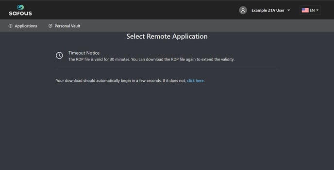 Once downloaded, open the .rdp file to initiate an RDP session to your application.